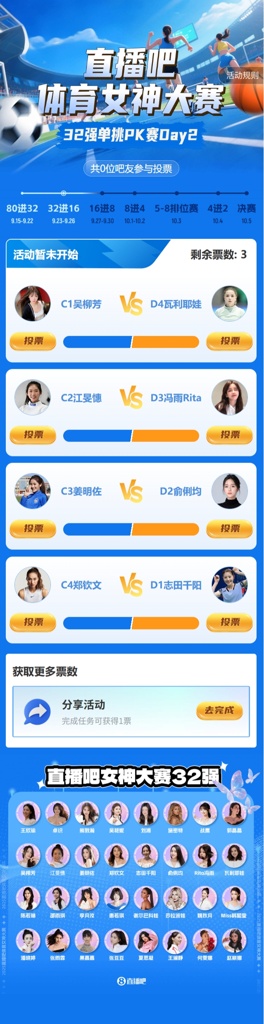 详情请点击:2025年『体育女神大赛』正式上线快来为她投出心动一票