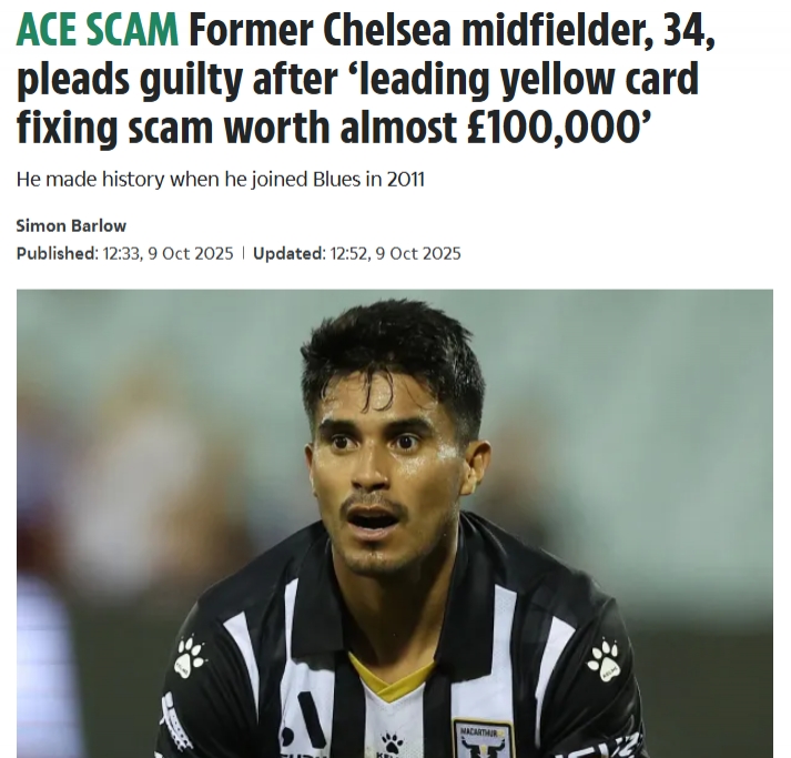 10月09日讯 据英媒《太阳报》报道,前切尔西球员乌利塞斯-达维拉承认在澳超参与假球,在法庭上对犯罪事实供认不讳。